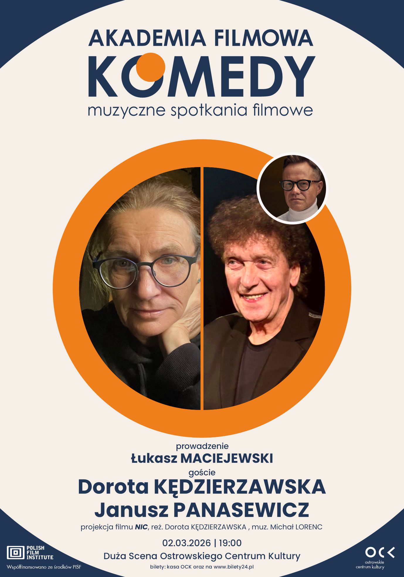Wybitna autorka kina artystycznego i rockman z krwi i kości. Takie spotkania są możliwe tylko w kinie. Tylko w Ostrowie Wielkopolskim. Jedynie w ramach „Akademii Filmowej Komedy”.