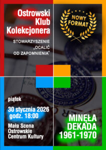 Ostrowski Klub Kolekcjonera (OKK) rok 2026 rozpocznie nowym pomysłem na klubowe wieczory. Jak zostanie przyjęty przez ostrowian, dowiemy się 30 stycznia. To właśnie w ostatni piątek stycznia o godz. 18.00 na Małej Scenie Ostrowskiego Centrum Kultury rozpocznie się spotkanie Мinęła dekada 1961-1970.