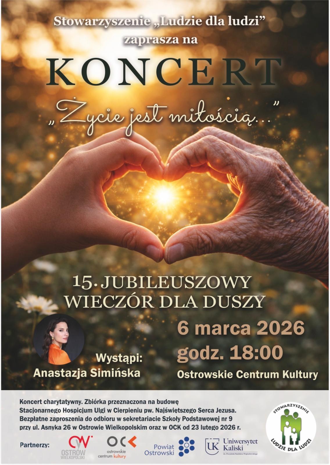 „Życie jest miłością” to tytuł tegorocznego, jubileuszowego „Wieczoru dla duszy”, który będzie miał miejsce w Ostrowskim Centrum Kultury. Koncert organizowany przez Stowarzyszenie „Ludzie dla ludzi” odbędzie się w piątek, 6-go marca o godzinie 18:00.